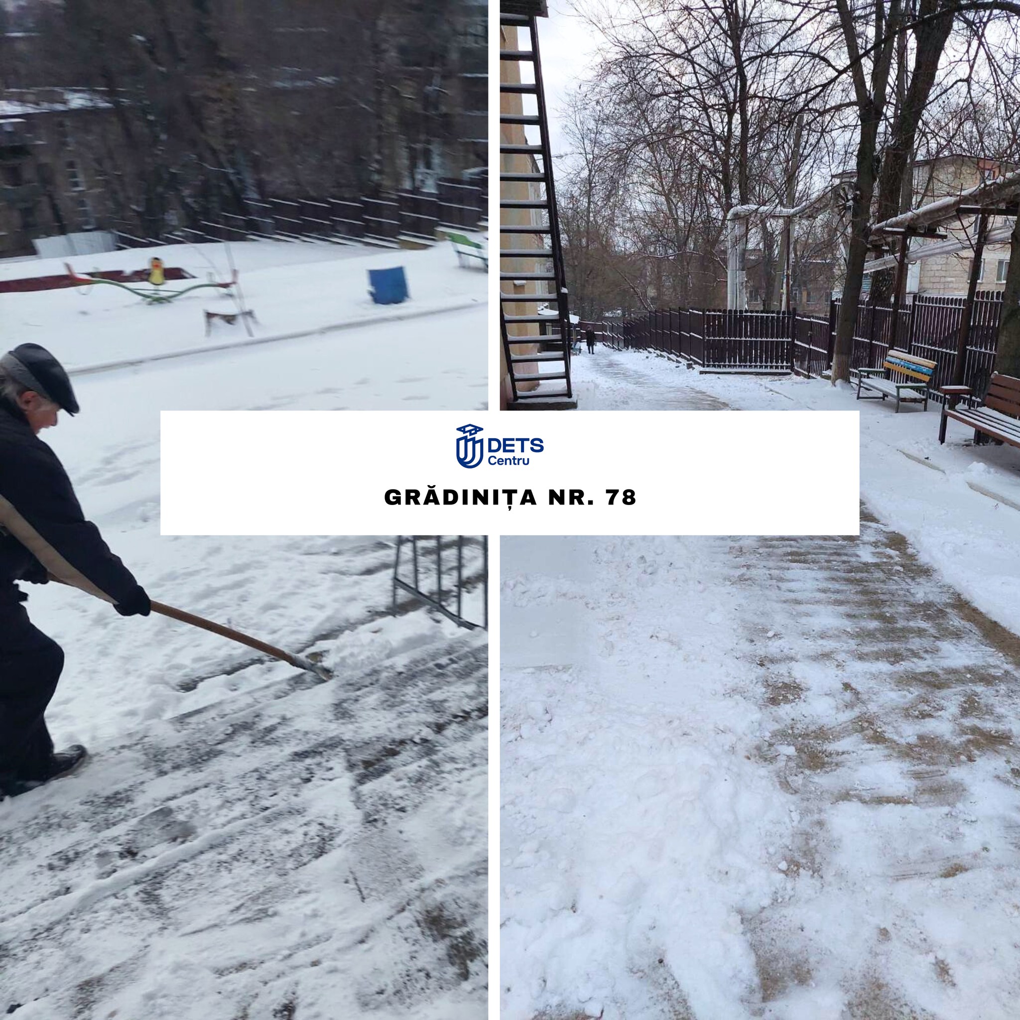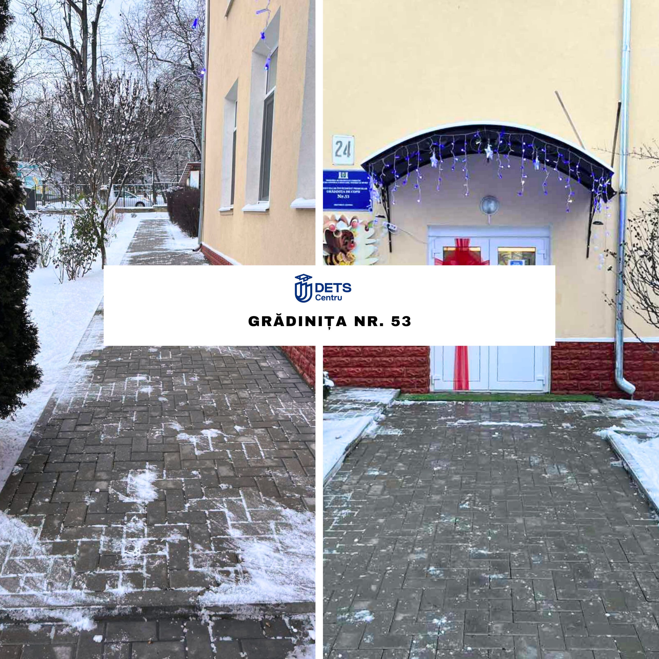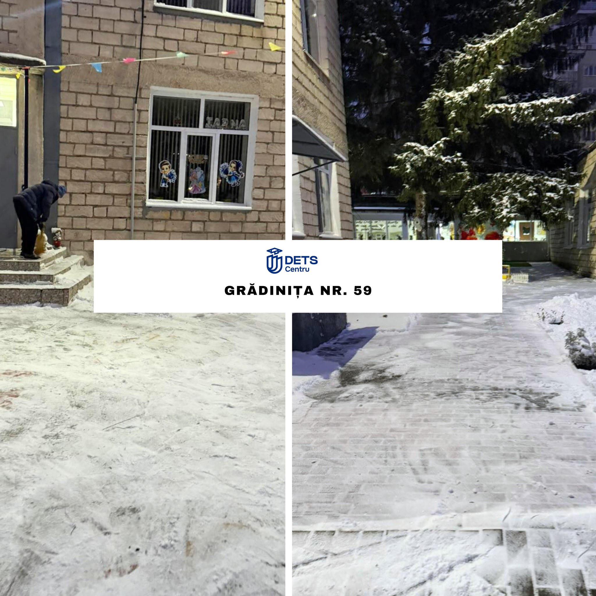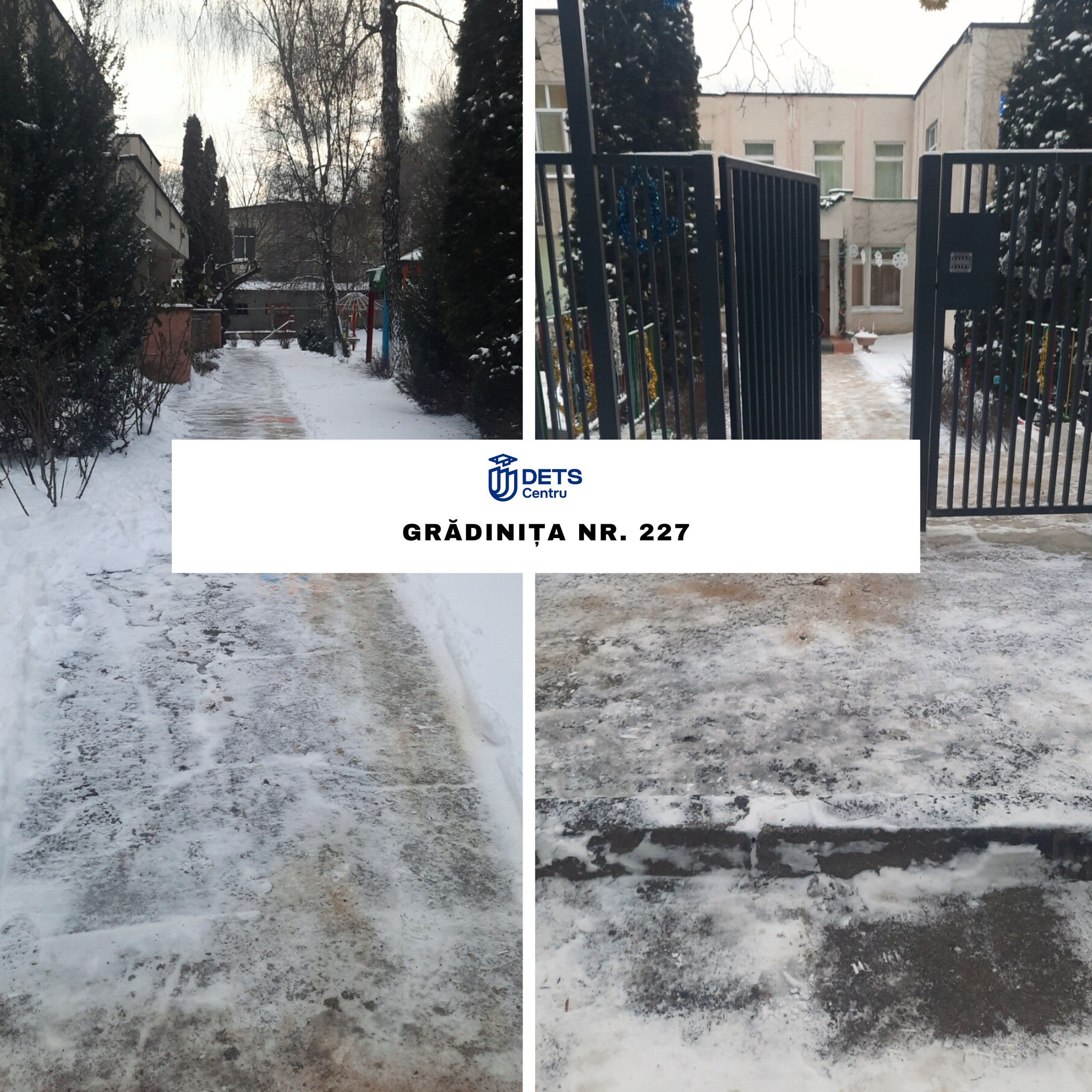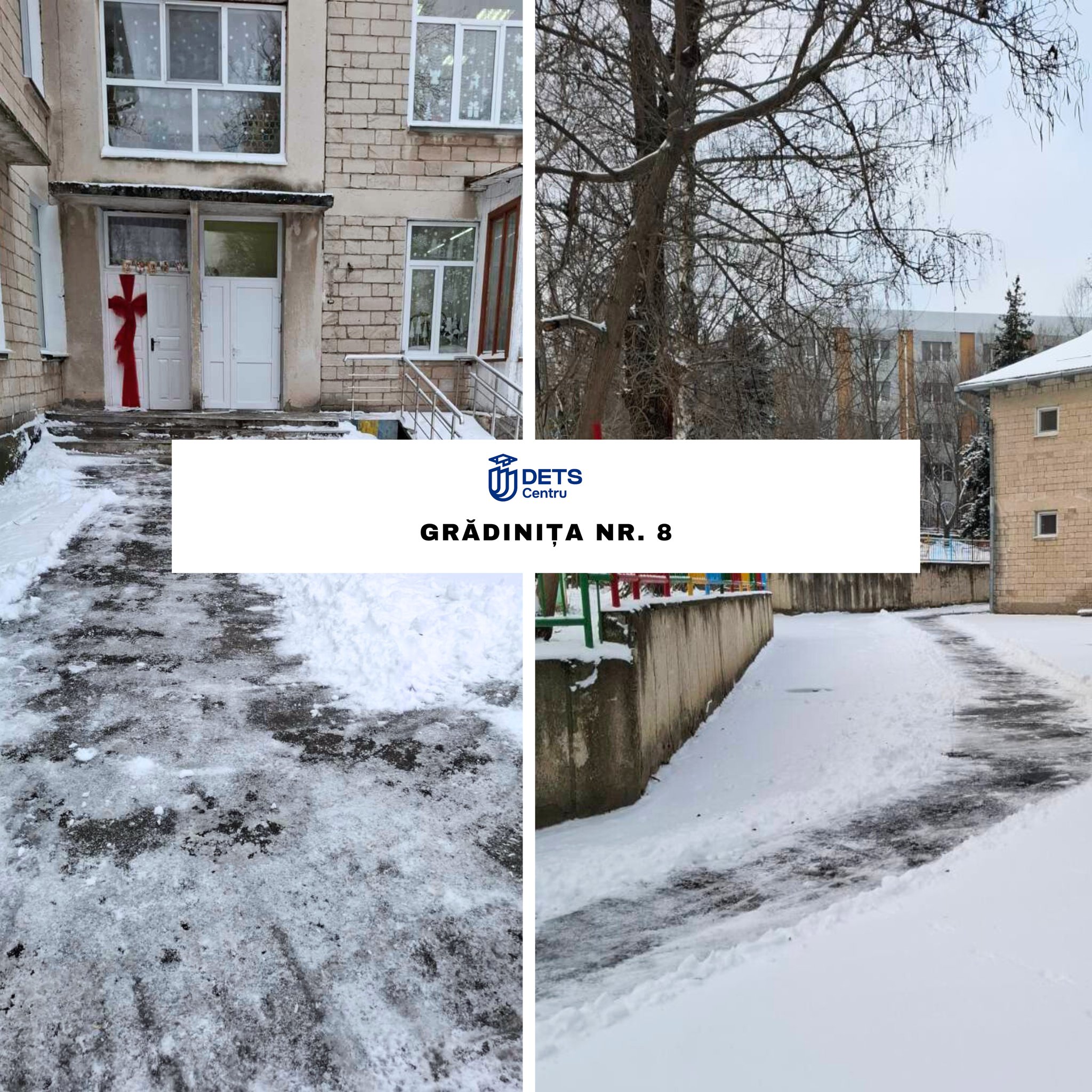 În contextul ninsorii din data de 8 ianuarie, angajații instituțiilor de învățământ din sectorul Centru au intervenit începând de ieri, precum și astăzi, din primele ore ale dimineții, pentru înlăturarea stratului de zăpadă și presurarea materialului antiderapant solid, în vederea combaterii poleiului.